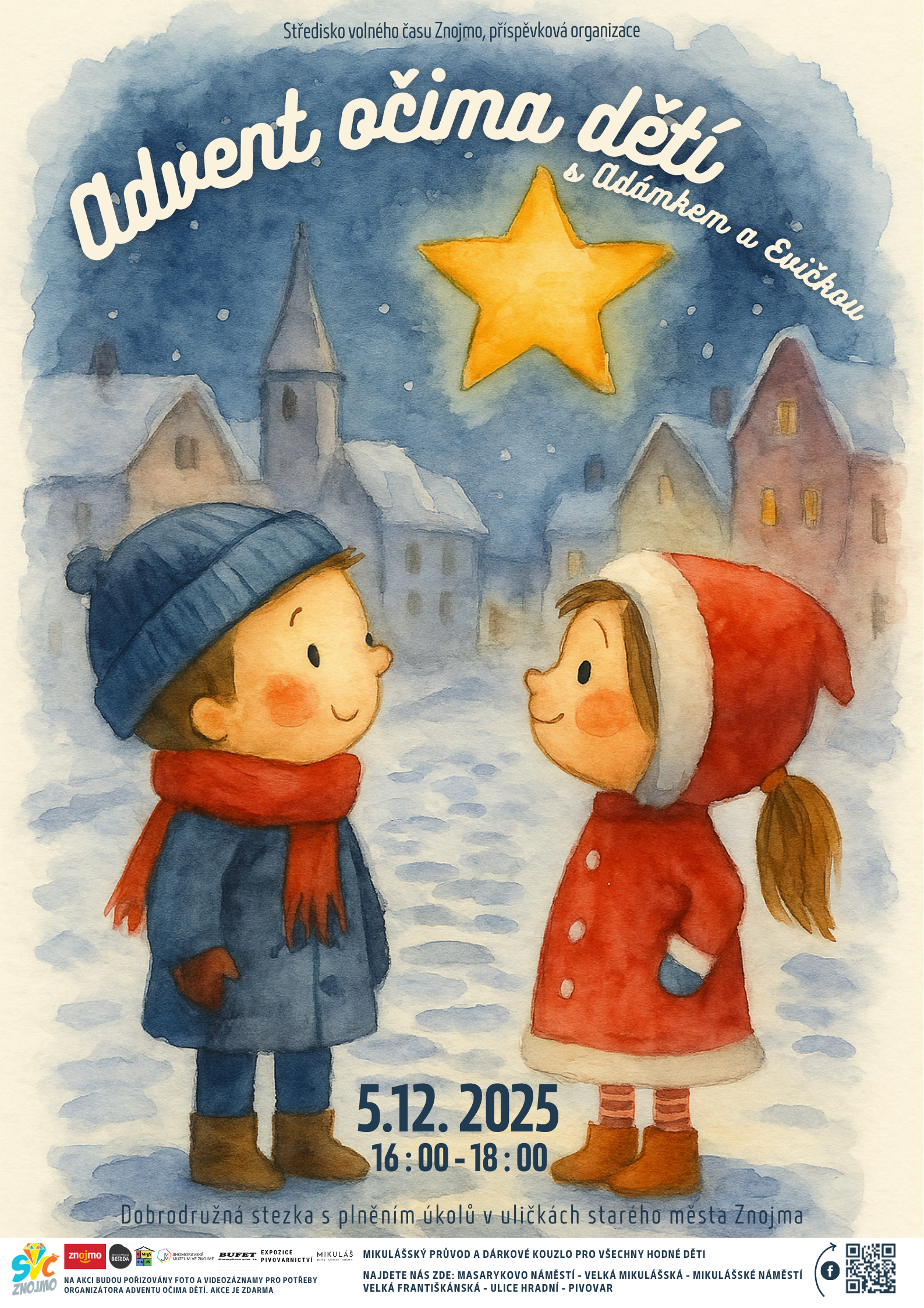 Na naší akci Advent očima dětí 2025 jich bude plný adventní kalendář. Budeme se na vás všechny těšit v uličkách města Znojma 5. 12. 2025 (16:00-18:00).