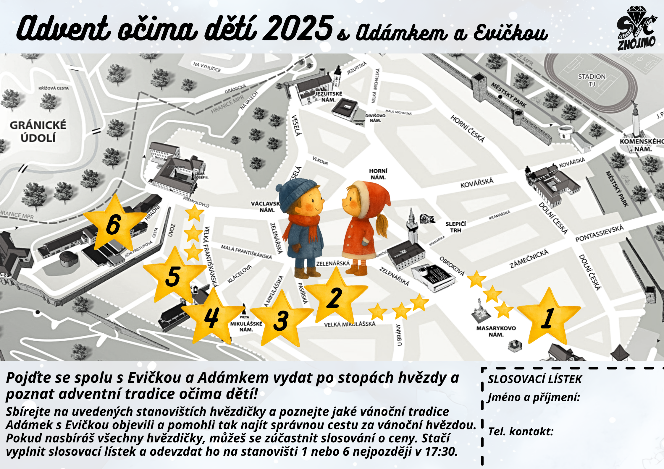 Již zítra vypukne Advent očima dětí. Zveme všechny zvídavé děti i rodiče. Máme pro vás připravená různá stanoviště na téma vánočních zvyků a tradic. Abyste se mohli připravit na akci dopředu a zjistili, kde přesně nás najdete, zveřejňujeme mapu, kde jsou uvedené veškeré potřebné informace.
