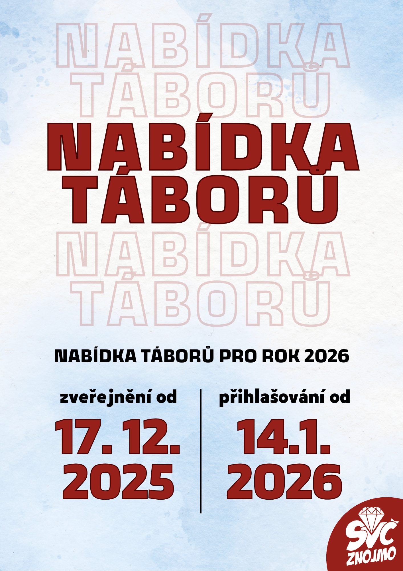 Přihlašování bude aktivní až 14. 1. 2026 na našich webových stránkách v sekci Tábory. Pokud tedy dostanete od Ježíška nový diář, nezapomeňte si toto datum poznačit. Těšíme se na všechny naše táborníky.