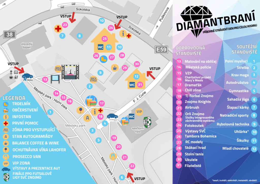 Diamantbraní nám pomalu klepe na dveře, takže je ten správný čas vám představit mapku areálu se všemi stanovišti. Máte se opravdu na co těšit! Mapky budou k dostání na našich dvou infostanech. Ke stažení ji naleznete zde