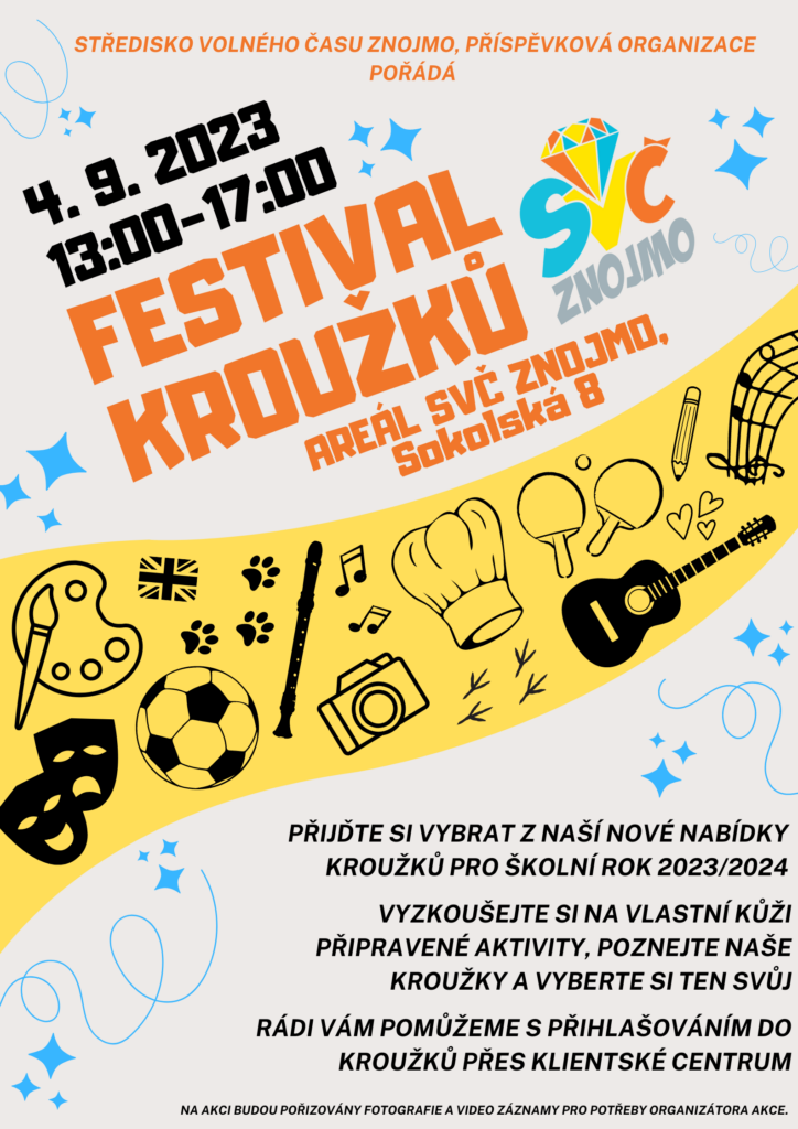 Letošní podzimní prázdniny se SVČ Znojmo již čekají na všechny, kteří se chtějí během dnů volna pobavit a zažít dobrodružství. Kdo chce být součástí FOFRPODZIMEK, online přihlášení je aktivní zde Online přihlášky přijímáme nejpozději 23. 10. 2023. Po tomto datu nebude možné se přihlásit. Kapacita akce je omezená, tak neváhejte dlouho Těšíme se na vás!
