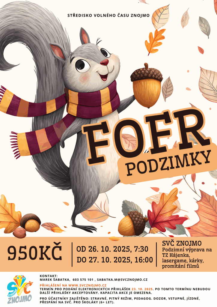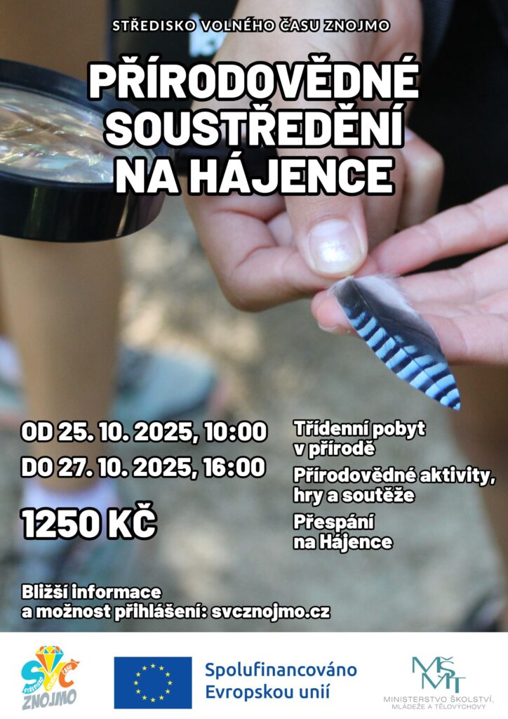 - od neděle 10. 08. 2025 10:00 hod.- do úterý 12. 08. 2025 16:00 hod. Přidej se k nám na tři dny plné objevování, bádání, her a zábavy uprostřed přírody! Budeme pozorovat rostliny i zvířata v lese.Nahlédneme do mikrosvěta i do dálky.Vyzkoušíme si různé pokusy a měření.Chybět nebudou přírodovědné hry a soutěže.Užijeme si večerní pohodu u táboráku!Zajištěno bude celodenní stravování a pitný režim.Na společnou výpravu do světa přírody se těší Rosťa, Víťa, Lucka a Verča. Bližší informace a možnost přihlášení (prostřednictvím klientského účtu): https://svcznojmo.iddm.cz/detail/3457 Akce je podpořena projektem “SVČ Znojmo - Diamant”, který je realizován v rámci Operačního programu Jan…
